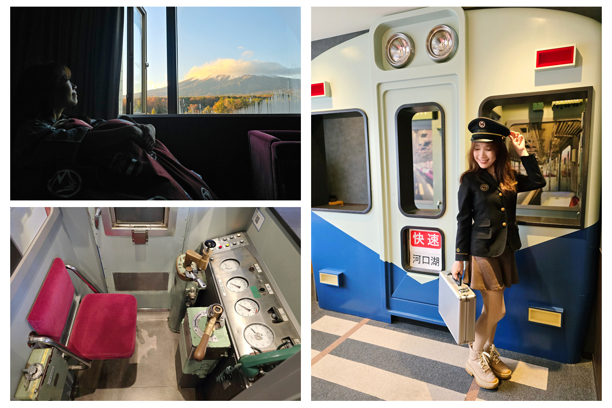 最強大的在這裡!富士急行線主題客房連駕駛艙都原封不動的完整保留。我下巴都還沒闔起來呢,行李員溫馨提醒可以先穿上駕駛員制服幫我們留影,因為這套服裝是會先收走的唷!